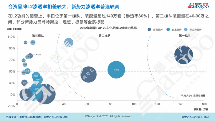 可见,在L2的装配量上合资品牌的两极分化较为明显。