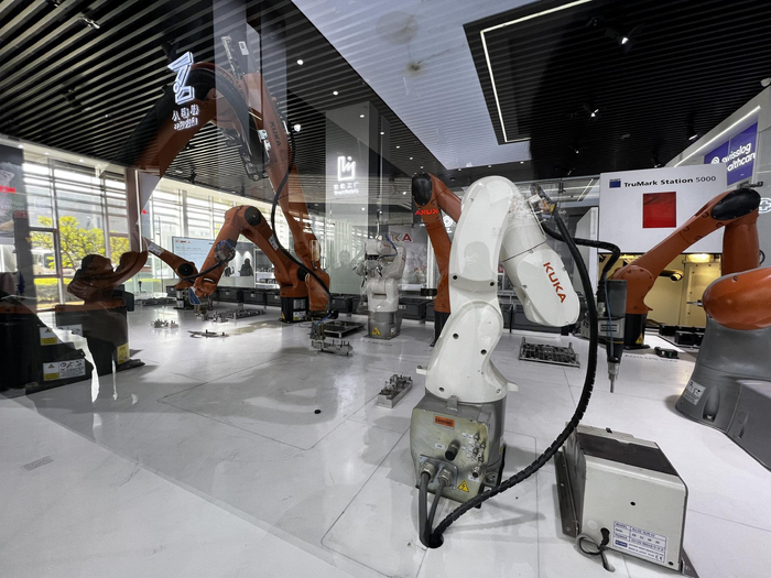 库卡机器人(广东)有限公司于2018年成立,总部位于佛山市顺德区北滘镇,主要从事机器人本体及控制系统研发制造、系统集成。库卡广东2019年正式投产,2020年机器人产量超6300台,实现产品销售收入9.72亿元,2021年继续保持高速增长,机器人产量突破17000台(约占全国产量近4.9%),机器人本体年产值达25.7亿元,同比增长165%,产量占省内工业机器人行业约14%的市场份额,是华南最大机器人本体生产基地。