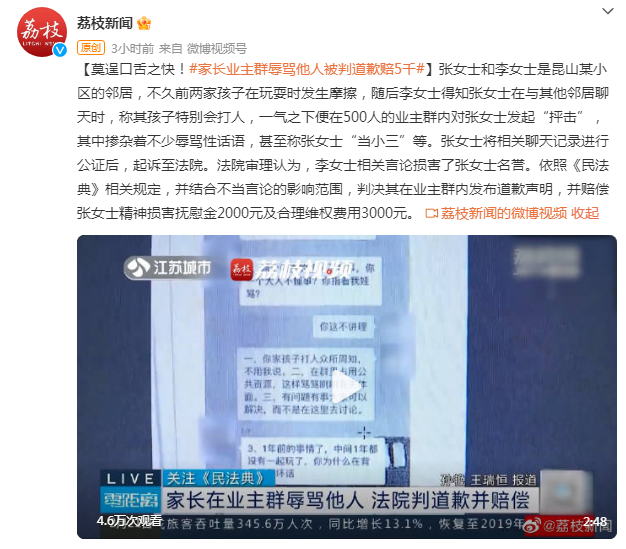 莫逞口舌之快!家长业主群辱骂他人,被判道歉并赔5千