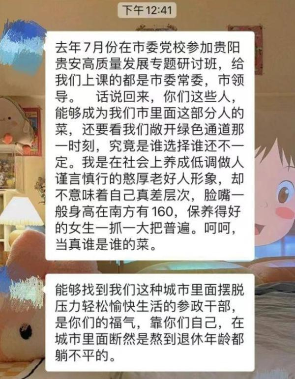 根据聊天信息,该男子与贵阳市云岩区八鸽岩街道一工作人员身份疑似高度吻合,有人称,该男子系一街道党工委委员、副书记、政法委员王某杰。