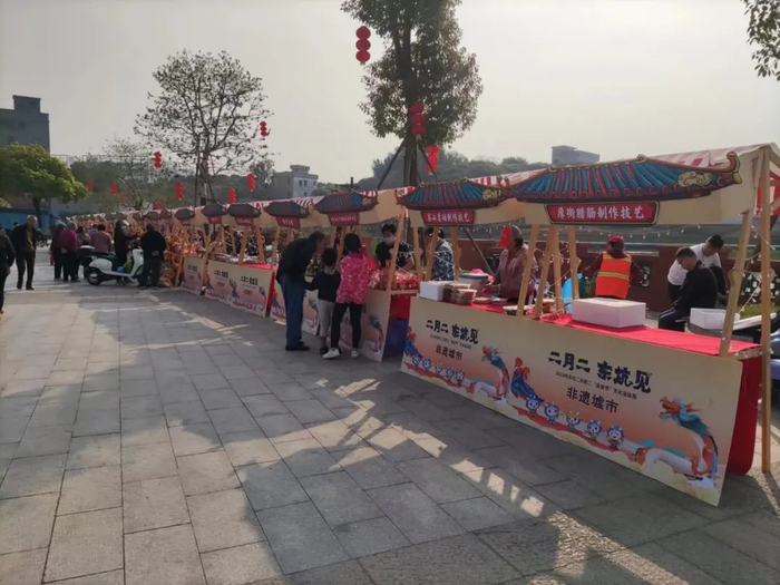 展示东坑非遗文化资源,同时联动东莞市各地非遗,如麒麟、腊肠等非遗精品展销,元素丰富,产品多样。