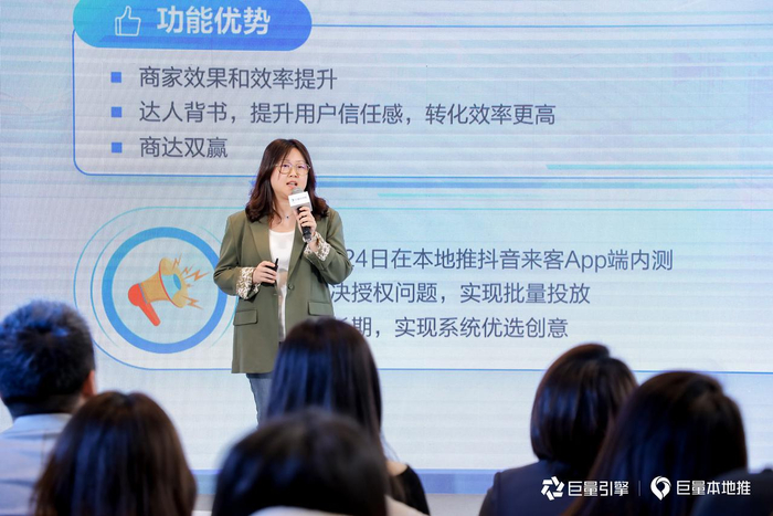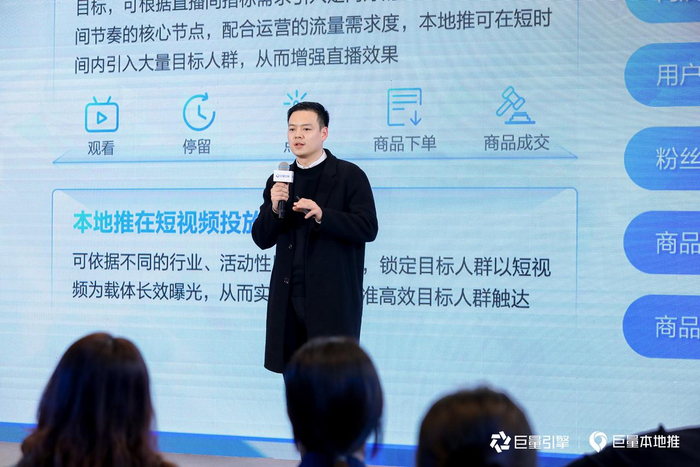 除了商户,几家最早投入短视频生活服务赛道的服务商、代理商也分享了各自的经验。在产品使用层面,景尚集团新媒体分公司总经理董猛提出,巨量本地推具有基础人群选择、投放目标清晰、系统自动出价等功能,搭配其他电商投放工具使用往往能起到“探索增长最优解”的效果。