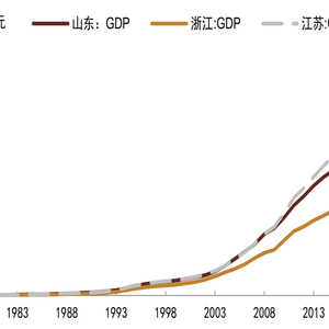 图表1:江苏、浙江、山东GDP水平