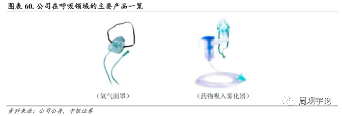 公司在呼吸领域的产品有氧气面罩、 氧浓度可调面罩、 药物吸入雾化器等。氧气面罩和氧浓度可调面罩的主要功能为与呼吸设备连接向患者输送氧气等气体, 主要用于上、 下呼吸道感染、 支气管哮喘、 痰液较多病人、 严重鼻炎患者、 慢性肺炎等治疗中。药物吸入雾化器主要用于氧气吸入和进行雾化药物吸入的病人, 用于治疗各种上下呼吸系统疾病, 如感冒、 发热、 咳嗽、 哮喘、 咽喉肿痛、咽炎、 鼻炎、 支气管炎等疾病。