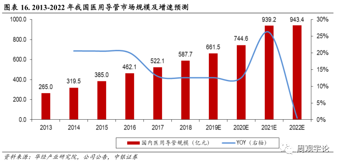 据华经情报网数据, 随着老龄化加速、 新医改政策落实、 医疗体系完善, 国内医疗器械市场保持较快的增长, 预计国内医用导管市场 2022 年将达到 943.40 亿元。
