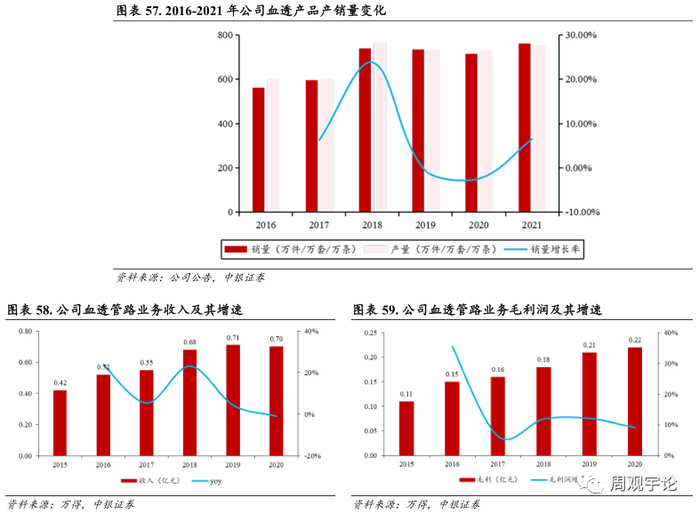 公司血透领域产品主要是血透管路, 子公司沙工医疗专注血透管路产品, 是国内最早一批获得血透管路注册证的企业之一, 产品质量稳定, 拥有良好的品牌知名度。2021 年, 公司开始进行血透管路生产线的扩产建设, 子公司沙工医疗在建的血液净化体外循环管路生产扩建项目引进了国内领先的自动化生产线,项目达产后血透管路年产能可提升至 2,000 万条, 将大大提升生产效率, 降低生产成本。随着公司产能扩张以及市场拓展加强, 预计公司血透管路产品市场份额会逐步提升。