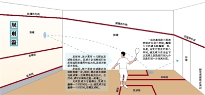 发球时,至少要有一只脚在发球格红线内。发球方必须将球打在发球线和前墙界外线之间,发球才被视为有效。