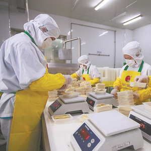 银祥生产副总周建华说,他们的豆制品加工车间是目前福建省规模最大、国内规格最高、车间设计和建造最为完善的豆制品生产单位。如今,6条豆制品生产线开足马力。