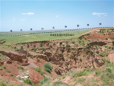 这里位于丘陵的低洼地带,由此向南眺望,地势较为平缓,迎面的丘陵顶部几个明显的“豁口”在绵延起伏的丘陵中时隐时现直线向北延伸,和《史记》记载的“堑山堙谷,直通之”的秦直道相吻合。随后通过挖掘考古,发现了夯土层,他们判断这就是秦直道遗迹。