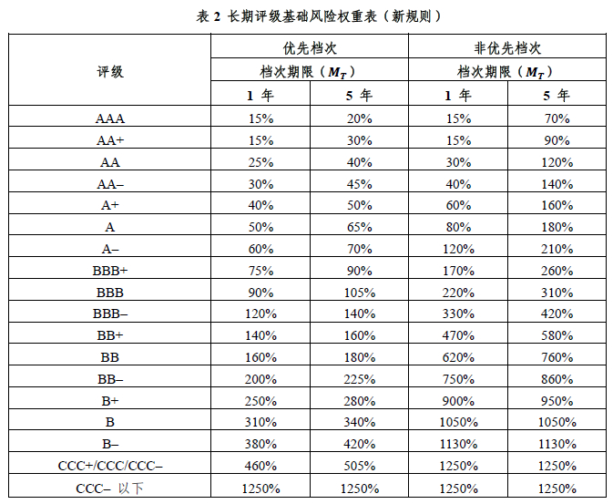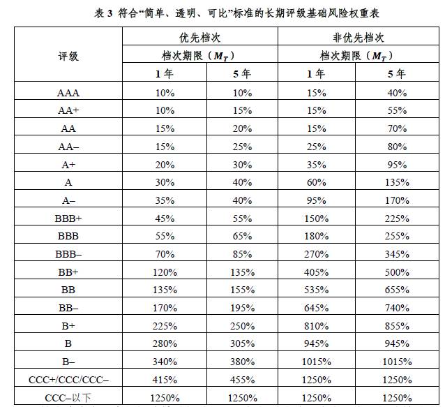 注:长期评级在BB+(含BB+)到BB-(含BB-)之间的,发起机构不适用表中的350%或650%风险权重,而适用1250%的风险权重。