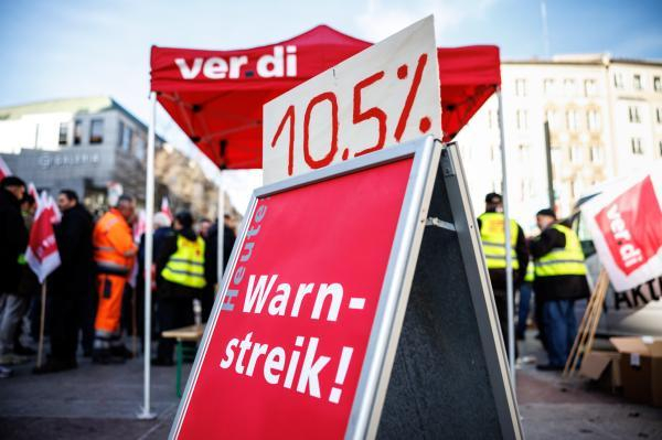 2月22日,德国慕尼黑,德国环卫工人举行罢工抗议,要求涨薪10.5%。