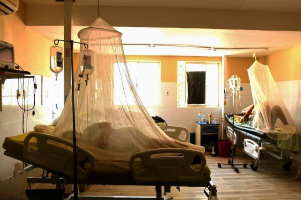 2月22日,玻利维亚圣克鲁斯,登革热患者在医院的蚊帐下休息。登革热是经蚊媒传播登革病毒引起的急性传染病,多发于热带和亚热带地区,主要症状是持续发热、头痛、肌肉痛、关节痛等,严重情况下可致人死亡。每年12月至次年3月为南半球夏季,也是玻利维亚雨季,属登革热高发季节。