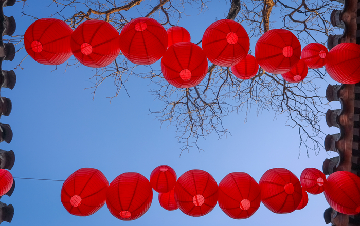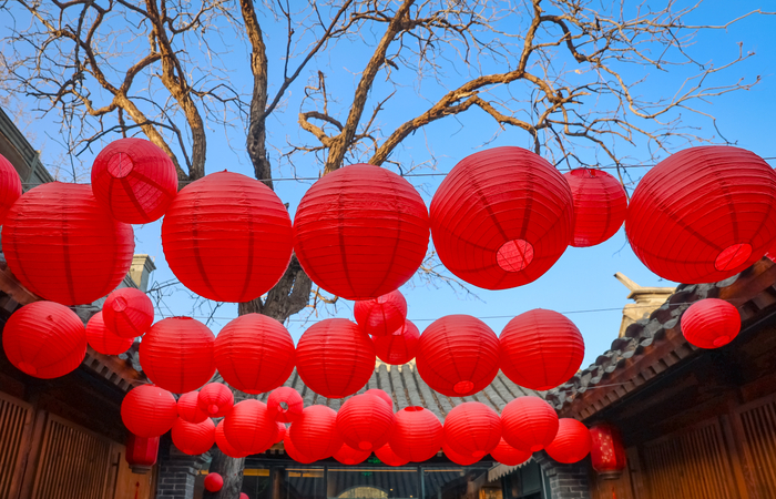 最近,小院里景观焕新,挂上了红灯笼,古树旁、走廊间、屋檐下……满院子都是红红火火的灯笼,十分好看,令人不禁联想起旧时孩童手提红灯过年玩耍的美好情景。