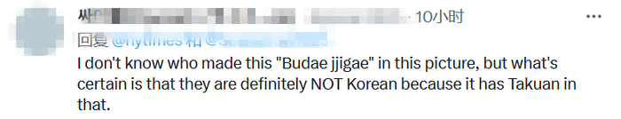 “我不知道这张照片中的部队锅是谁制作的,但可以肯定的是他绝对不是韩国人,因为我们不放腌萝卜(Takuan)。”像这样,给食谱纠错的留言层出不穷。