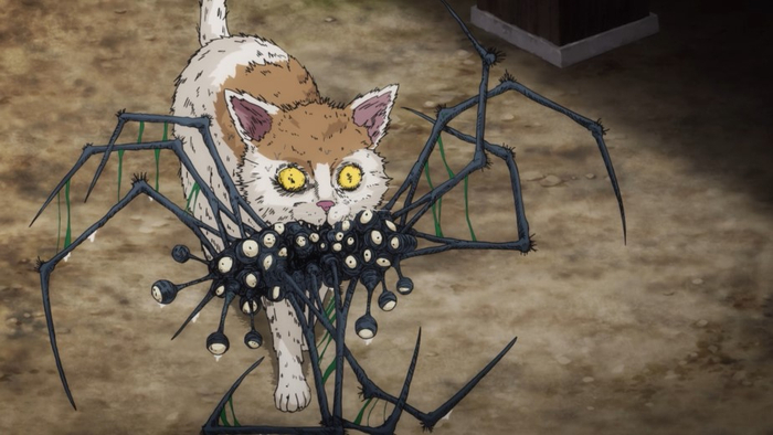 本季的最后一篇故事,就是双一与猫的互动,也是爱猫的伊藤润二发掘生活的趣味,是篇风格有些好笑,而不是那么惊悚的作品。这是伊藤润二在整体奇特诡谲的恐怖之外,另一种擅长的特征。本季的故事,选择了同样氛围古怪而好笑的《怪异六兄妹 降灵会》,虽然作为开篇并不算精彩,甚至有些让人看不懂,也体现了制片方的某种考虑——以风格稍轻松的短故事作为开场和结尾,中间的剧集口味逐渐加麻加辣,都是为了符合初次观看伊藤润二的观众体验。
