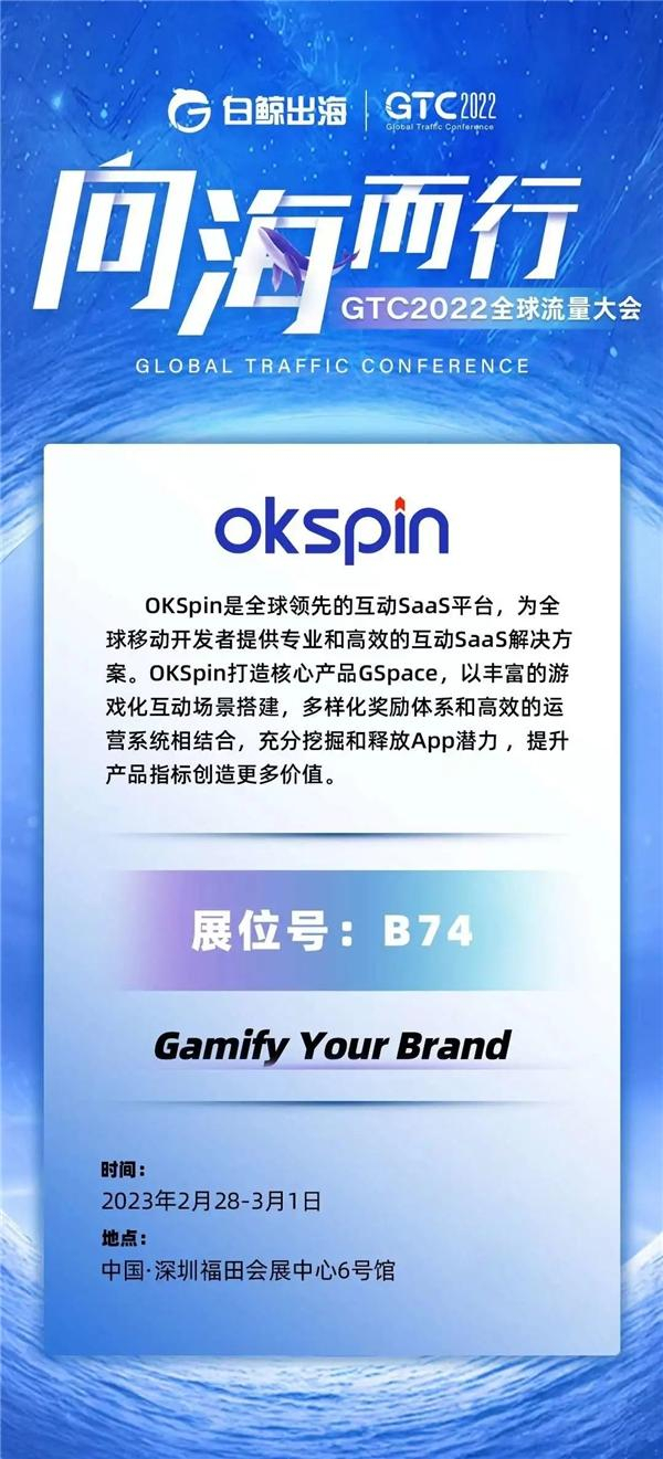 另据了解,由白鲸出海主办的GTC2022全球流量大会,将于2023年2月28日-3月1日在中国深圳福田会展中心6号馆拉开帷幕。作为全球领先的互动SaaS平台,OKSpin应邀参会。