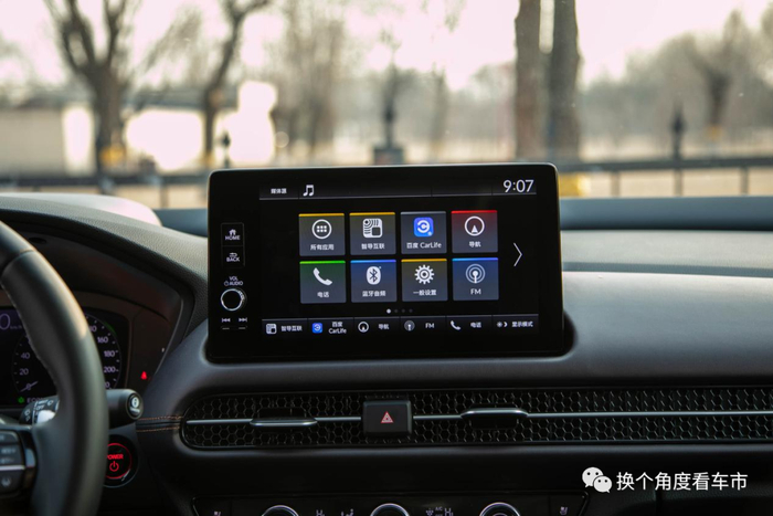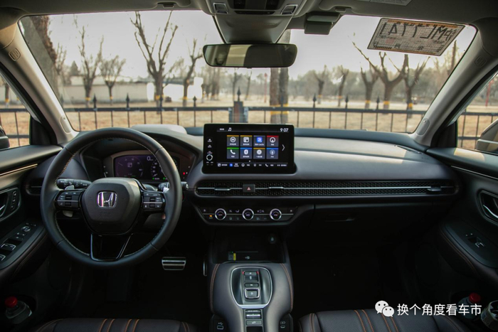 在内装设计方面,新车的设计风格与功能布局,几乎与燃油车保持了同步,仅在换挡区域使用了本田混动车型专属的按键式操作换挡机构。至于其他的不同,或许也仅有低速蜂鸣按键,毕竟广汽本田ZR-V致在e:HEV在EV模式下,拥有相当的行驶内外静谧性。