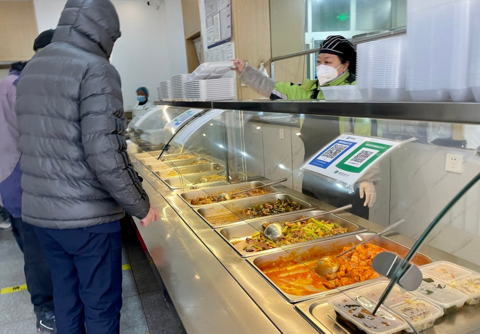 据店长孙洪伟介绍,春节过后,社区食堂客流量正在逐渐恢复,一天大约有三百人,去年高峰期能达到四五百人。“劲松二区那边还有一家,2019年就开了,面积虽然小点,但人气也一直很旺。”