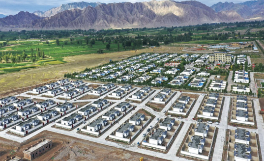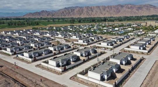 远山白雪皑皑,近处绿树成行。站在高处远眺,整齐划一的移民搬迁住宅区、养殖暖棚区、各类服务设施……金山镇成为一座美丽的乡村小城镇,在祁连山下冉冉升起。