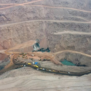 2月23日,救援车辆在内蒙古自治区阿拉善盟阿拉善左旗新井煤业有限公司露天煤矿坍塌事故现场作业(无人机照片)。新华社记者 贝赫 摄