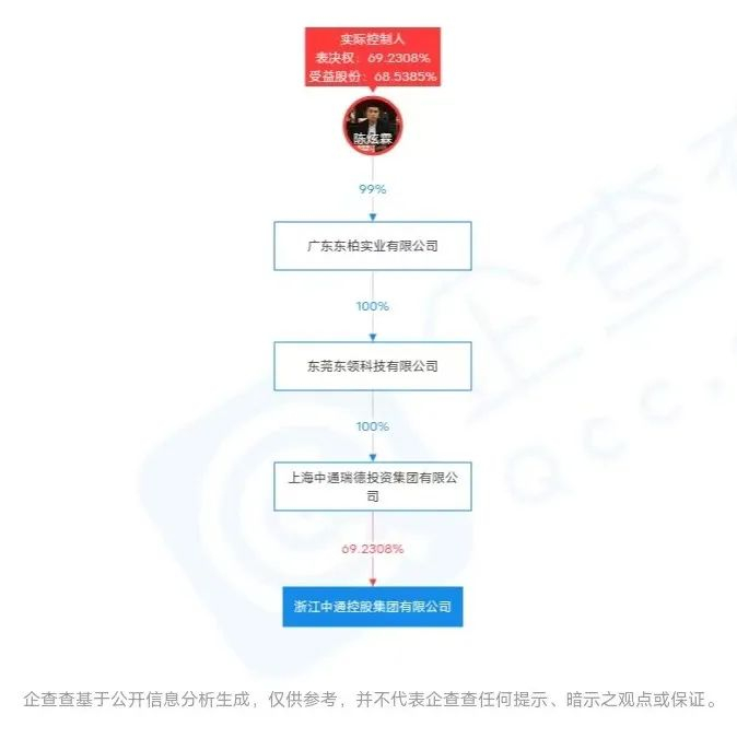 企查查显示,浙江中通幕后老板是台州籍85后资本大佬、广微控股实控人陈炫霖。