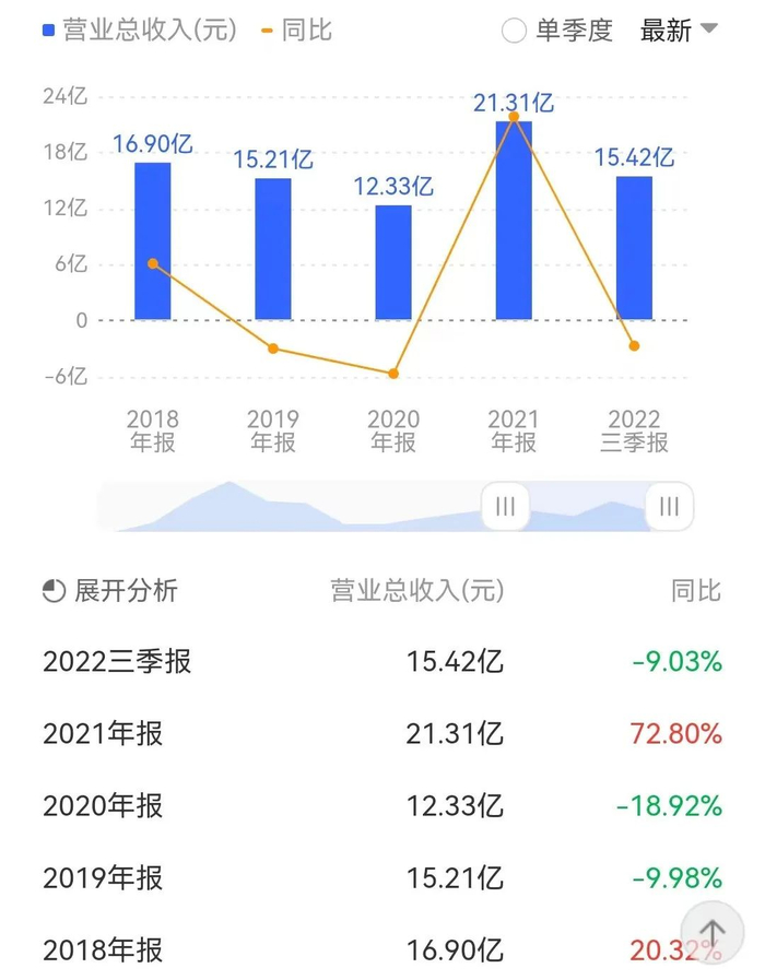 目前,慈星股份尚未披露2022年业绩预告。不过,其2022年三季报显示,公司实现总营收15.42亿元,同比下降9.03%;实现归母净利润8206万元,同比下降32.10%。