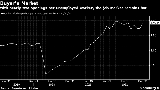 美联储官员说,这种情况还没有发生,说不定永远都不会发生。即便如此,他们仍在密切关注所谓的“超核心通胀率”,也就是餐馆、清洁公司等服务行业的价格,部分原因是这些企业的成本很大一块是工资。随着大宗商品和普通商品的价格下跌,薪资水平成为了美联储抗通胀行动的关注重点。