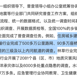 这个答案,随着近日国新办完成了第一次全国自然灾害综合风险普查工作,而浮出水面。