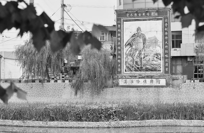 绵河岸边的韩信“背水列阵处”纪念碑。