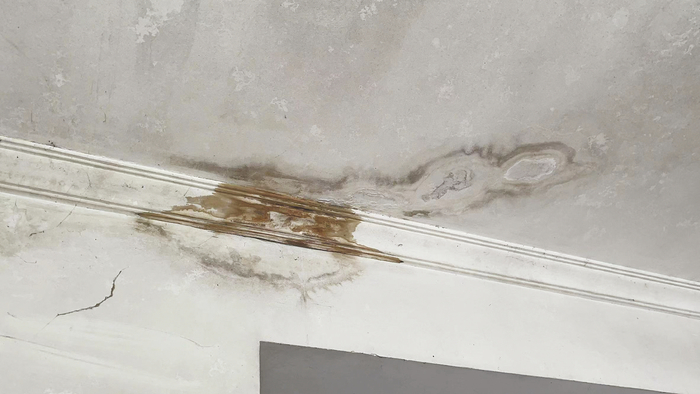 房内客厅部分墙体因楼上漏水已出现明显损坏的痕迹
