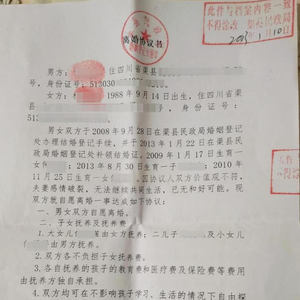 她介绍,2022年12月6日,自己与前夫何某某到渠县婚姻登记部门离婚,双方在《离婚协议书》上签字后,按照规定夫妻离婚有一个月的冷静期。一个月后,2023年1月10日,双方再次到渠县婚姻登记部门离婚。她称:“民政局工作人员又拿了一份《离婚协议书》,自己认为还是之前签订的协议,签字之后就回家了。”