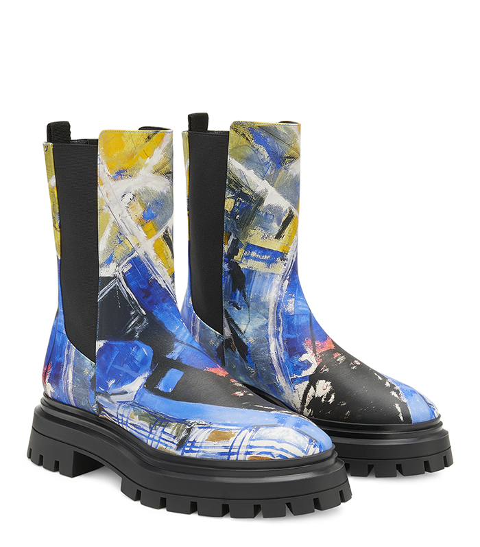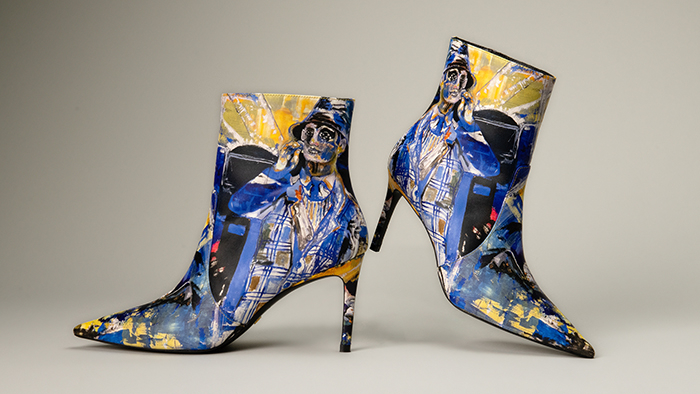 该限定系列承袭了Dillane的两件画作,分别描绘了地铁站台的场景和一对母子,将其融入进SW的凉鞋、短靴、乐福鞋、高跟鞋与丝巾的设计之中。Dillane的艺术笔触以浓烈色彩、利落线条与妙趣图案呈现,传递不羁态度。