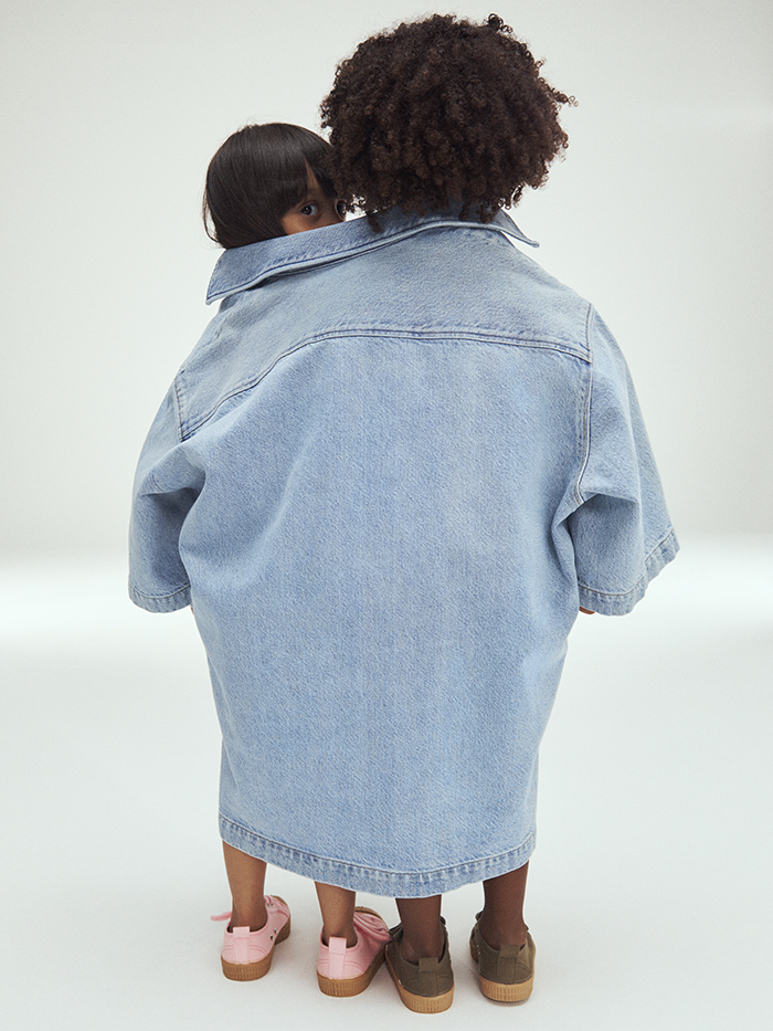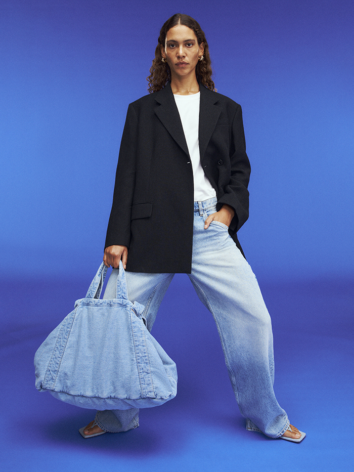 女装系列中的捏褶和抽皱等细节元素,增强了设计的特色和个性。牛仔单品主要采用环保棉及再生棉面料,以柔和水洗工艺制造。