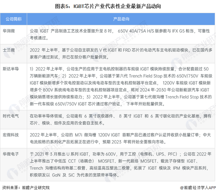 IGBT芯片产业代表性企业最新产品动向