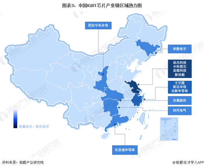 IGBT芯片产业链区域热力地图:代表企业主要分布在东南沿海地区