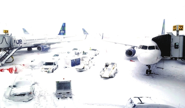 这场冬季风暴严重影响了“靠天吃饭”的美国民航运输业。当时,美国境内航班被大范围取消或延误——平时,美国航司的航班取消数量一般是两位数,而2月1日当天,美国有1800多个航班被取消、750多个航班延误。