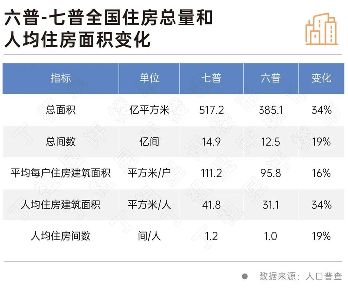 七普统计数据显示,2020年中国住房总面积超过500亿平方米,家庭户拥有住房间数达到14.9亿间。