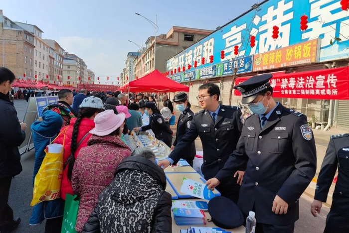 为让广大人民群众进一步了解毒品对个人、家庭和社会的危害,省三所结合米线节参与面广、人流量大等特点,主动发挥禁毒宣传教育职能,现场给群众开展了一堂深入人心的禁毒宣传教育。活动现场,省三所警察充分运用图文展板、仿真毒品,让人民群众树立起识毒、防毒、拒毒意识,并派出宣讲员向广大人民群众发放了禁毒宣传手册,具体讲解毒品危害,同时还开展了有奖知识问答活动和以案释法活动,让普法工作以群众喜闻乐见的方式进行,在润物细无声中扫除群众法律盲区和思想误区。