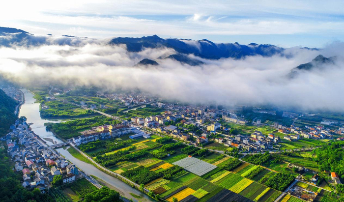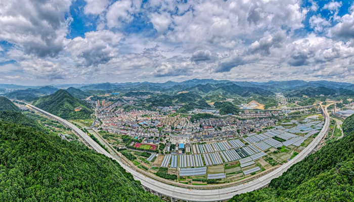 湍口镇位于临安区西南,是远近闻名的温泉旅游小镇。这里八山环绕、四水汇流,素有“四水落明堂”的美誉。湍口森林覆盖率达到87%,PM2.5常年低于40微克/立方米,负氧离子指数常年超过3000个/立方厘米。