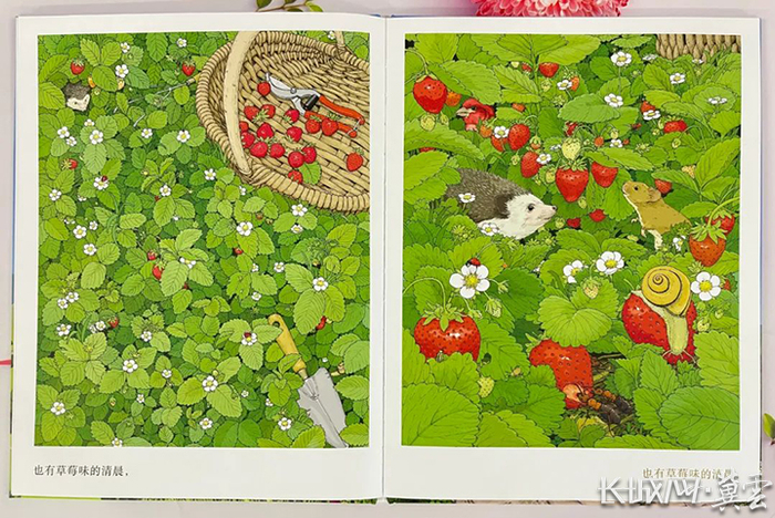 用草叶的绿和草莓的红做主色调,让读者在满目葱茏、芬芳馥郁的世界里放松身心、舒展灵魂。四季时光随着诗歌韵律流转,带你览尽春花夏雨、秋实冬雪,就算在阴沉雾霾天,也能吸一口大自然的清新氧气,任雨后森林的风吹入你的心间。