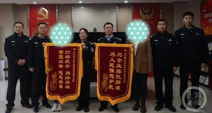 2月22日,公司负责人专程来到江北区公安分局,将一面写有“为企业排忧解难,为人民保驾护航”的锦旗送给办案民警,感谢民警的为民服务和破案神速。