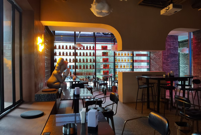 位于成都新华公园附近的百调酒馆,是泸州老窖旗下的线下体验店,去年9月份刚刚开业。主要以轻酒、轻咖、轻食为主,旨在为年轻消费者打造沉浸式酒咖体验新场景。