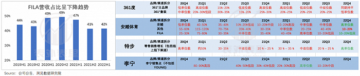 对此,安踏在2022H1业绩公告中甩锅给了宏观:由于疫情,高端线FILA闭店率最高达到了30%,同时加大零售折扣,叠加全球原材料价格上涨,产品成本率有所增加。