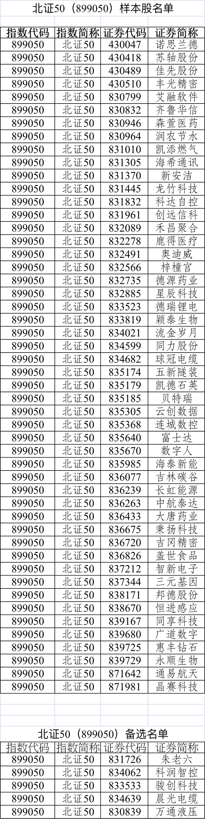 被调出的个股有哪些?记者对比此前名单发现,汉鑫科技、同心传动、拾比佰、大地电气、同辉信息此次未出现在北证50样本股名单之列。