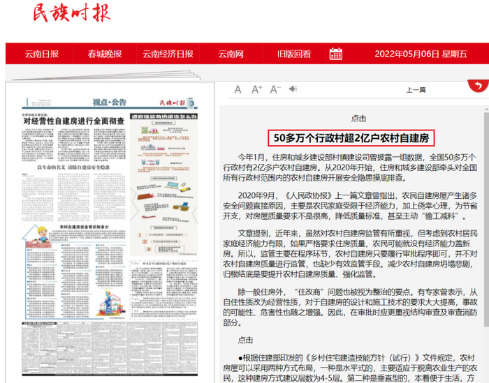 根据住建部2022年1月公布的数据,全国有50多万个行政村,有2亿多户农民自建房。
