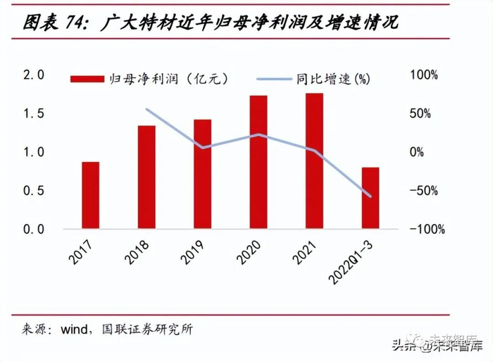 广大特材于 2006 年成立,主营业务为高端特钢材料和风电零部件。公司于 2019 年近进军风电铸件业务,截至 2022 年拥有大兆瓦风电铸件产能 10-12 万吨, 2023 年中期将形成 20 万吨大兆瓦风电铸件产能。2022 年 10 月公司可转债项目 获证监会批准,拟投资 11.5 亿元建设 8.4 万件风电齿轮箱核心精密零部件产能。2022 年前三季度公司营业收入同比有所上升 21.85%,但由于风电行业总体 需求减弱,再结合疫情反复、钢材价格总体维持高位,前三季度归母净利润同比下 降 57.91%。