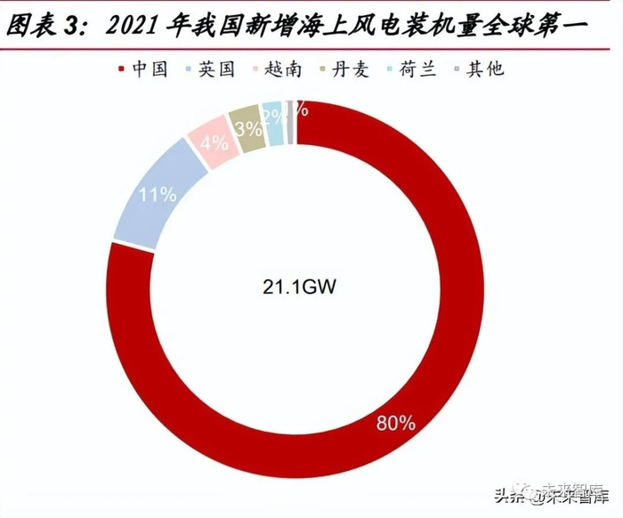 根据 GWEC(全球风能协会)披露,2021 年我国新增风电装机容量为 47.6GW, 占全球总风电新增装机容量的 51%。海上风电方面,海上风电新增装机量与累计装 机量均位列全球第一。