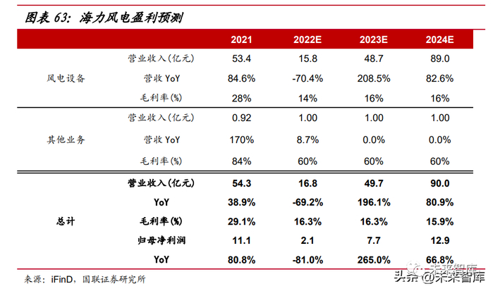 铸造产能扩张带动出货量增长,盈利能力受益原材料价跌。预计公司 2022- 24 年有效铸造产能预计共 2/7/15 万吨,预计 2022-24 年公司铸造主轴出货 1.6/4.5/8.0 万吨,对应收入 1.6/5.1/9.2 亿元,预计其他铸件于 2023 年较大规模出 货,2023-24 年出货量分别为 3/7 万吨。受益于海内外风电装机需求提升,预计公 司 2022-24 年锻造主轴出货 14/17/20 万吨,未来装机需求提升将提升公司议价能 力,预计 2022-24 年风电业务毛利率为 32%/34%/36%。我们预计 2022-24 年归母净利润分别为 3.81/6.58/9.62 亿元,同比23.31%/72.75%/46.36%;EPS 分别为 1.45/2.51/3.68 元/股。