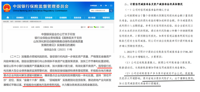 《意见》指出,鼓励全国性银行向山东倾斜不良资产处置政策资源…指导银行机构完善大型企业债务融资检测预警机制,提前制定接续融资和债务重组预案…积极配合化解地方政府债务风险等。