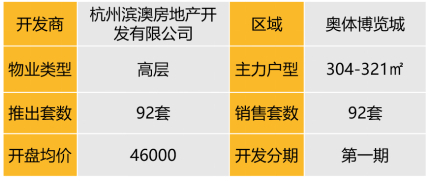 开盘详情:2022年12月28日,滨江揽奥望座首开仅有的1幢高层92套房源,户型建面304-321方。